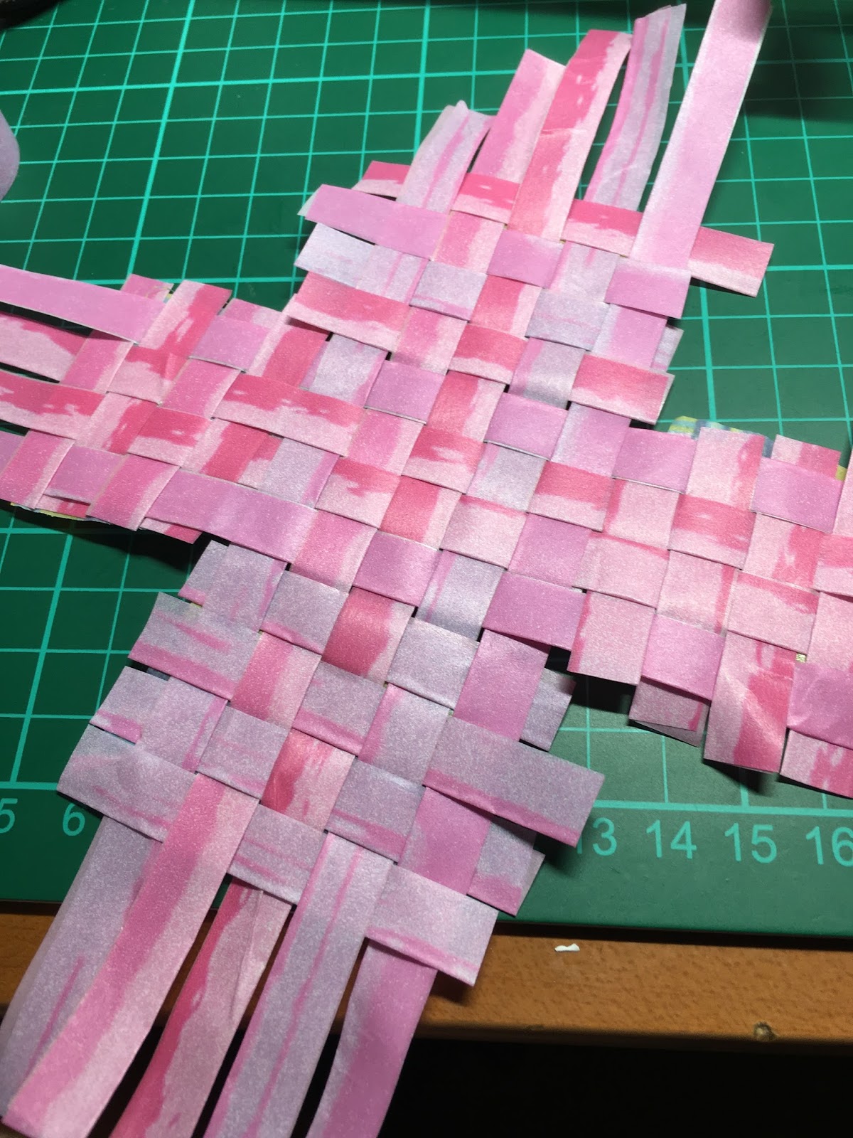 And from there I just added more stripes till I was satisfied with the size of the base. You can see the creases in the stripes from my lousy folding techniques.